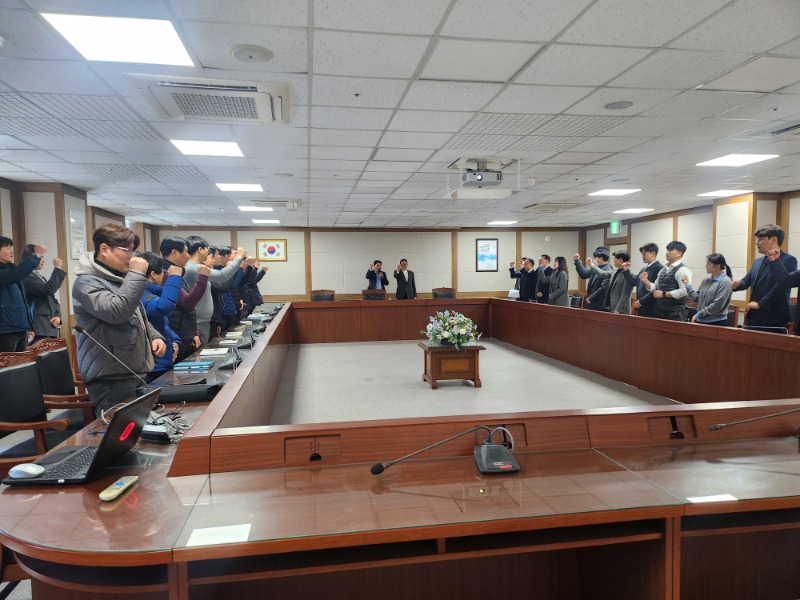 선창 구호로 "우리굴!" 시작으로 직원들도 힘차기 "화이팅!" 3창으로 시무식을 마무리 했습니다.